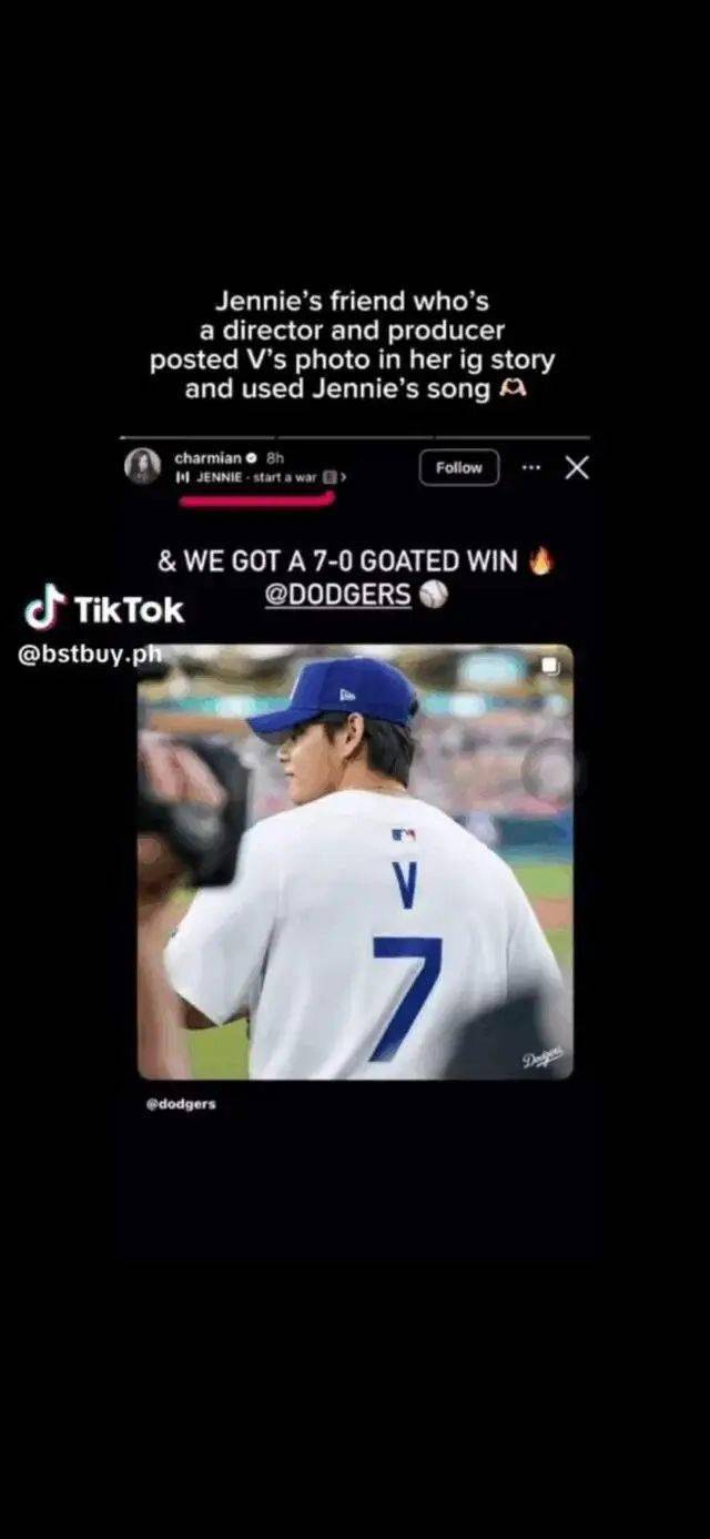 这还不是全部。稍早前,Jennie的导演兼制片人好友@charmian 也在Instagram上发过V在美国洛杉矶道奇队棒球赛开球的照片,更引人遐想的是,她配文用的居然是Jennie的歌曲。这一举动被不少网友视为“圈内人隐晦盖章”——“不是真朋友,怎么会发这个?还不是知道点什么!”